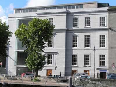 A fine stone river-fronted building built by the Barrington family. The architect Frederick Darley was paid for the plans on the 18th July 1829 and the hospital was completed in 1830. The classically composed formal front elevation is ennobled by the raised podium and arcaded portico. The recent addition to the west has classical references nodding at a symmetrical composition with the east wing, leaving the central principal block the most important element within the ensemble. The building adds significantly to the architectural heritage of the City, and stands as an important monument to the philanthropic endeavours of the Barrington family. The Barringtons are historically associated with Limerick, with the arrival of Samuel Barrington in 1691, which is recorded on a monument in the Saint Mary's Cathedral. His son Benjamin Barrington, was Sheriff of Limerick in 1714, was survived by his son, also Benjamin Barrington, who became Sheriff of Limerick in 1729. On 21st February 1764 Joseph Barrington was born. He was a most influential figure of the family in Limerick, and one of his most important achievements was the foundation, with his sons, of the hospital and infirmary in Limerick. The hospital has closed though the building survives which still bears their name. Today a private hospital occupies the building erected by the Barringtons. It was incorporated by Act of Parliament. On 30th September 1831, under George IV, Joseph Barrington was created Baronet. He died 10 January 1846 and was survived by his elder son, Sir Matthew Barrington, 2nd Baronet, Crown Solicitor for Munster. Matthew built Glenstal in Co. Limerick. Sir William Hartigan Barrington, 3rd Baronet, was survived by his son Sir Croker Barrington, 4th Baronet. The family's burial vaults are in Saint Mary's Cathedral.
