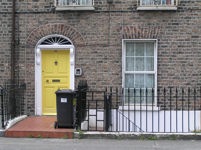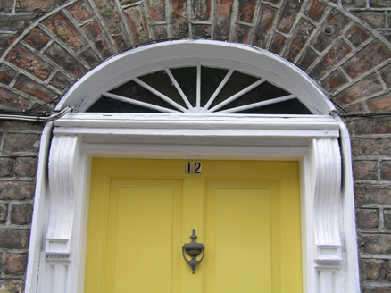 Terraced two-bay four-storey over basement brown brick house, built c. 1840. M-profile artificial slate pitched roof concealed behind a parapet wall. Lean-to return to rear. Partially rendered red brick chimneystacks to party walls. uPVC rainwater goods. Brown brick walls laid in Flemish bond, with cement re-pointing, with a flashed coping surmounting the parapet wall. Painted rendered basement elevation terminating beneath sill level. Cement rendered rear elevation. Square-headed window opening, brown brick flat arches, rendered reveals, limestone sills and replacement uPVC casement windows. Metal balconettes, c. 1980, to first floor level. Camber-arched window opening to basement level altered to form door opening with glazed uPVC door leaf. Segmental-arched door opening, brown brick arch, patent rendered reveals, limestone threshold step, and inset doorcase comprising: panelled uprights with console brackets supporting lintel entablature, and having a spoke wheel timber fanlight; original raised and fielded panelled timber door leaf, with horizontal central panel. Door opens onto tiled front door platform, which is arrived at from pavement level by limestone steps, limestone plinth walls with wrought-iron railings, which return to enclose the front site basement area. Concrete landing and metal steps access basement level.