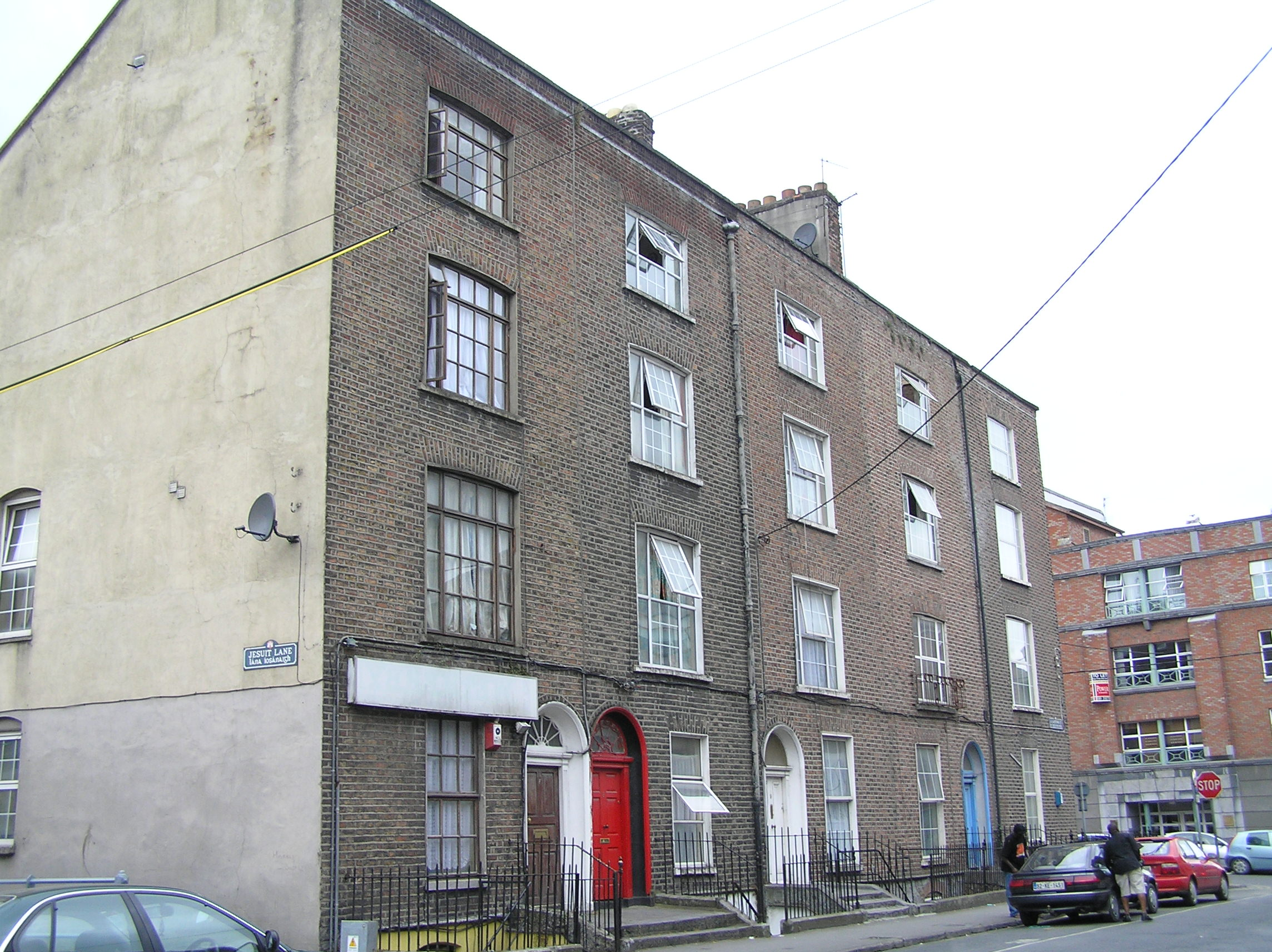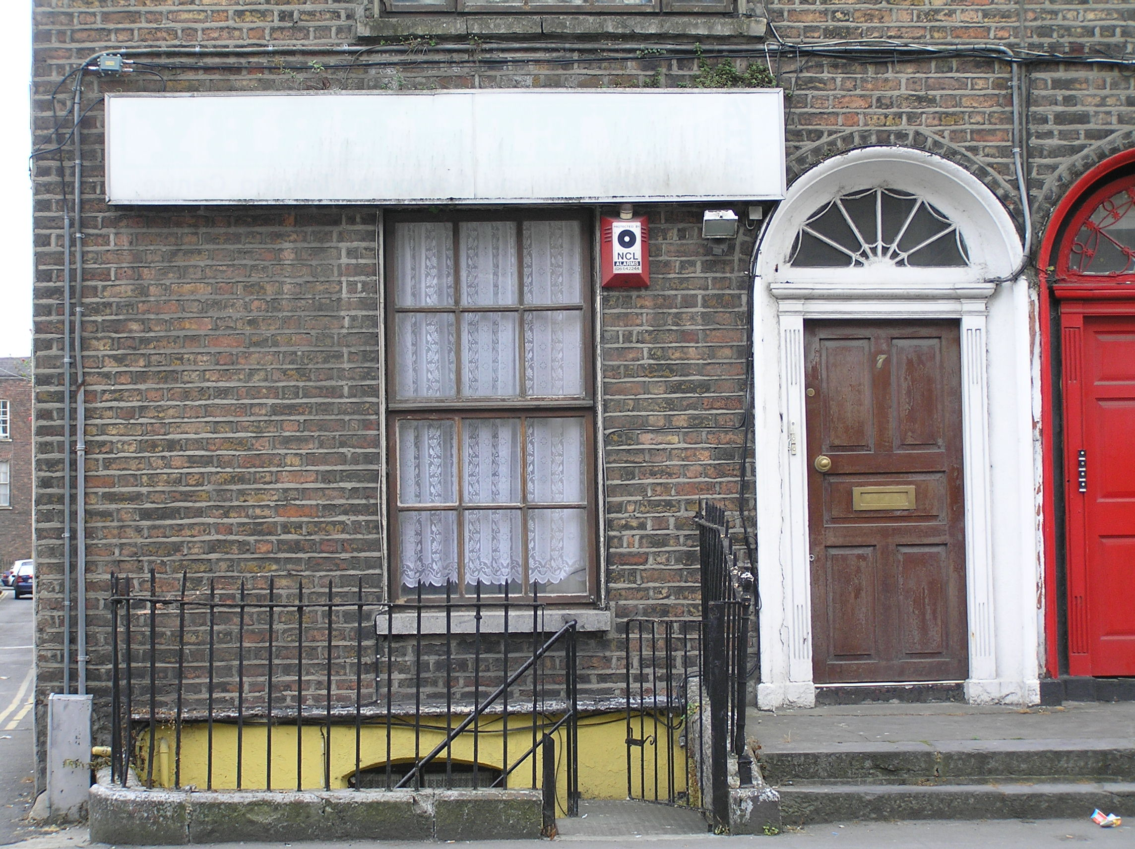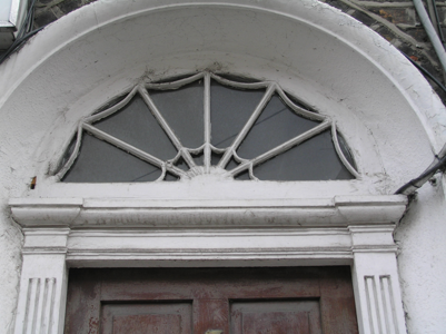End-of-terrace single-bay four-storey over basement brown brick house, built c. 1840, distinguished by wide camber-arched window openings above ground floor level. Pitched artificial slate roof with chimneystack removed. Brown brick façade laid in Flemish bond with cement re-pointing. Parapet wall rebuilt c. 1960, with original limestone coping surviving. Painted rendered basement elevation with plinth course delineating ground floor level. Painted rendered east-facing side elevation and south-facing rear elevation. Square-headed window opening at ground floor level, with brown brick arch, patent rendered reveals, limestone sill and replacement timber casement window. Wide brown brick camber-arched window openings above ground floor level, with limestone sills and replacement timber casement windows. Arch to third floor level rebuilt with parapet wall. Camber-arched basement window opening with rendered reveals and replacement uPVC windows. Round-arch door opening, brown brick arch, splayed patent rendered reveals, and inset timber doorcase comprising: panelled uprights with incised Greek key motif to one joined by lintel entablature; replacement panelled timber door leaf; original webbed fanlight with lead detailing. Door opens onto a poured concrete front door platform shared with neighbouring house and accessed via two limestone steps. Limestone plinth wall with wrought-iron railings and cast-iron rail posts with urn finials enclosed front site basement area, which is accessed by metal steps. Rubble limestone gable wall of possible return or coach house evident to rear. Metal roller shutter gives access to site to rear.