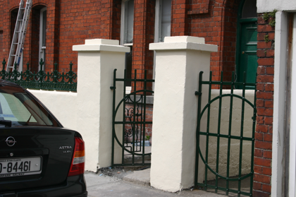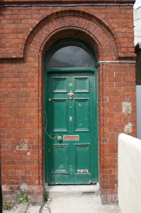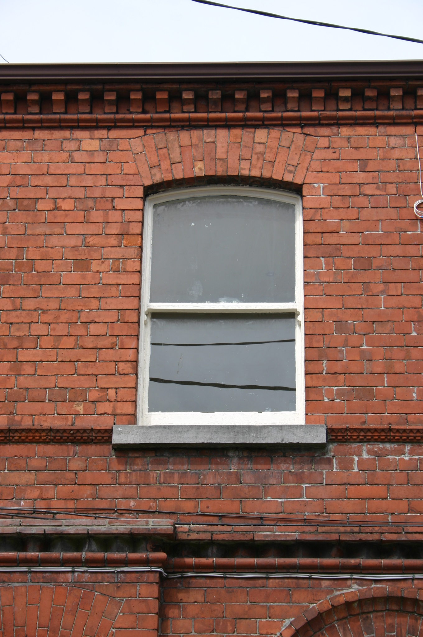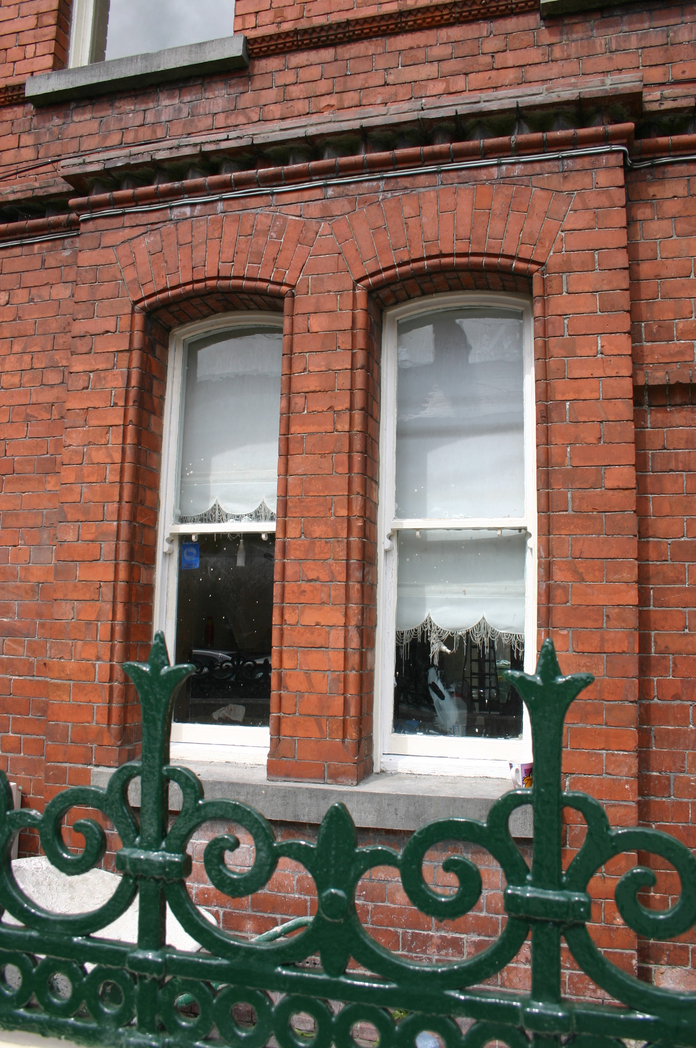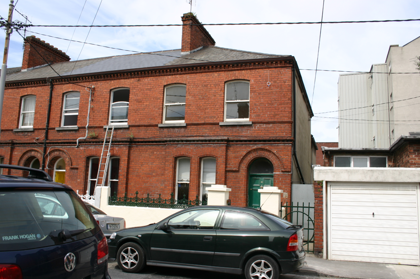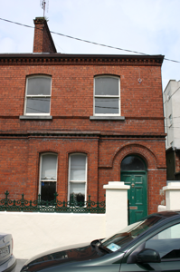 End-of-terrace two-bay two-storey red brick house built c. 1900, with two-storey return. Hipped natural slate roof with a shared red brick chimneystack with terracotta pots. uPVC rainwater goods on dentilated red brick eaves. Red brick walls laid in English garden wall bond with a decorative moulded stringcourse at first floor level, an angled brick course above ground floor level and a chamfered brick course at ground level. Rendered walls to side and rear elevations. Brick camber-arched window openings at first floor level with limestone sills and one-over-one timber sash windows. Shallow rectangular bay to ground floor, with a pair of brick camber-arched window openings with bowtell surround, double limestone sill and one-over-one timber sash windows and cylinder glass. Brick round-arched door opening with brick moulding and bowtell surround, with timber-panelled door set back with overlight above. Front area enclosed by painted rendered wall with decorative cast-iron railings and two piers with wrought-iron gate having circle design.