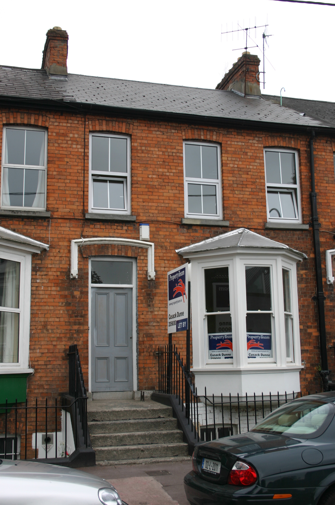 Terraced three-bay two-storey over basement red brick house, built c. 1895, with an oriel window, a front railed basement area. Pitched artificial slate roof with black ridge tiles, a shared red brick chimneystack to both party walls with clay pots and uPVC rainwater goods. Red brick walls to front, laid in English garden wall bond. Gauged brick camber-arched window openings with limestone sills and replacement uPVC windows, except the basement having two-over-two timber sash windows with iron bars. Three-sided canted timber oriel window to ground floor with a hipped zinc roof and replacement one-over-one timber sash windows, continuous moulded sill and moulded corbelled out base. Gauged brick camber-arched door opening with a label moulding and stone stops. Replacement timber-panelled door and rectangular overlight opening onto concrete platform with cast-iron bootscraper and five concrete steps. Wrought-iron railings on painted plinth course enclose the basement area.