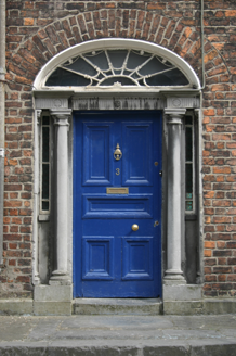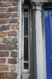 Attached three-bay three-storey over basement gable-ended brick townhouse, dated 1826, with a front railed basement area and a three-bay three-storey return. Pitched artificial slate roof with timber barge boards to side gables and a substantial brick chimneystack rising from the south side gable with clay pots, and a further chimneystack to the return. Cast-iron rainwater goods on overhanging eaves. Brick walls laid in Flemish bond with original pointing. Some rubble limestone sections to north side elevation. Cut limestone plinth course above painted rendered basement walls. Gauged brick flat-arched window openings with patent rendered eaves, limestone sills and mostly original timber sash windows without horns and some cylinder glass. One-over-one to second floor, six-over-six to first, ground and basement floors. Gauged brick three-centred arched door opening with patent rendered reveal with original timber-panelled door flanked by engaged carved limestone doric columns, original sidelights, supporting stepped entablature and decorative iron fanlight above. Door opens onto limestone step and limestone paved platform with three limestone steps, flanked by wrought-iron spear-headed railings and cast-iron corner posts on limestone plinth which encloses the basement area below. To the pavement are two square iron coal hole covers set in limestone surrounds.