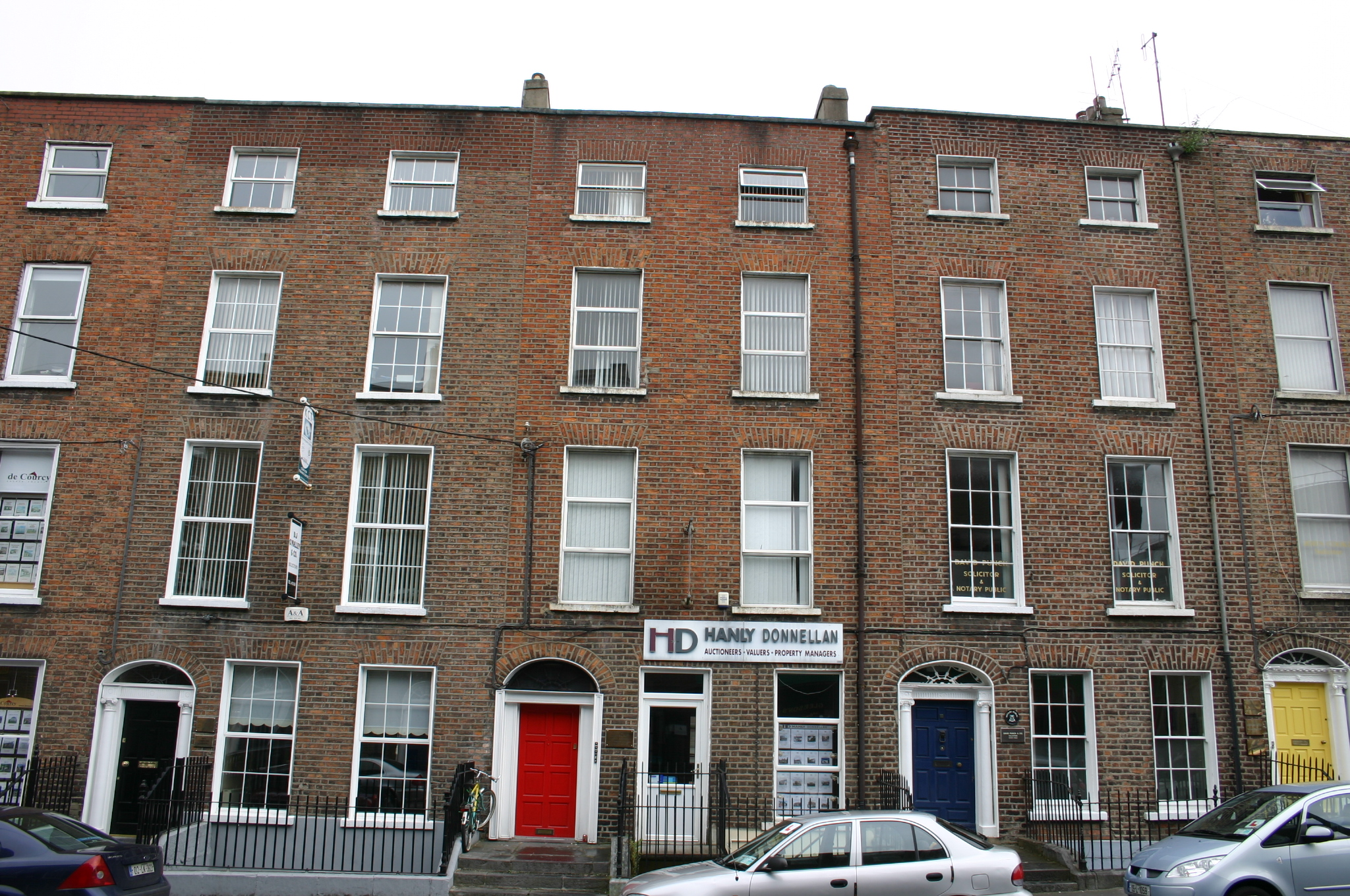 Terraced two-bay four-storey over basement red brick former townhouse, built c. 1840, with sill level of one window opening dropped to form a second door opening at ground floor level. Pitched roof concealed by parapet wall with a red brick chimneystack evident to east and west party wall. Cast-iron rainwater goods. Red brick façade laid in Flemish bond, with cement re-pointing. Limestone coping to parapet wall. Painted rendered basement elevation rising to beneath ground floor sill level. Square-headed window openings, red brick arches, patent rendered reveals, painted stone sills and replacement uPVC casement windows. Segmental-arch door opening with replacement doorcase door and fanlight, c. 1995. Opens onto a limestone entrance platform accessed from pavement level by limestone steps. Flanked by limestone plinth wall supporting replacement wrought-iron railings and cast-iron rail posts (possibly original). Railings return eastward to enclose front site basement area. Concrete steps to basement area. Square-plan cast-iron coal hole cover set in limestone flag to public pavement. Rebuilt building on site of coach house to rear site, built c. 2000.