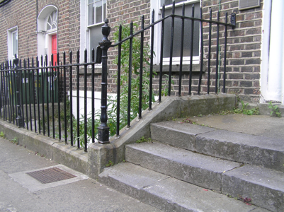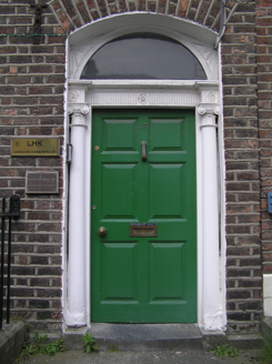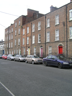 Terraced two-bay four-storey over basement red brick building, built c. 1830. Pitched artificial slate roof with a substantial chimneystack to either party wall, red brick with clay pots to east, rendered with clay pots to west. Metal rainwater goods. Painted rendered basement elevation terminated by painted plinth course at ground floor level. Red brick walls to façade laid in Flemish bond with cement re-pointing, c. 1990. Parapet wall raised above the rest of the terrace is capped by a concrete coping. Red brick east-facing side elevation. Rendered rear elevation. Square-headed window openings with tooled limestone sills and timber sash windows. Six-over-one to third floor and second floor, nine-over-one to first and six-over-one to ground floor, all c. 1960. Two-over-two timber sash window to basement opening, c. 1870. Exposed sash boxes to second floor only. Two-over-two timber sash windows to rear elevation with a round-headed stair hall opening with single-pane timber sash window and plain fanlight above. Segmental-headed door opening with brick arch and doorcase comprising engaged Composite columns joined by fluted frieze with rosettes, semi-circular plain glass fanlight above, with stuccoed fan detail to spandrels. Original mid twentieth-century raised-and-fielded timber-panelled door with door furniture. Plank timber door leaf to basement area door opening. Stone flagged basement area enclosed by rendered walls, with openings to cellar under the pavement. Limestone plinth wall surmounted by wrought-iron railings, with Neo-classical cast-iron rail posts capped by urn finials. Railings return to flank front door area, arrived at by limestone steps. Limestone flag to pavement with square cast-iron coal hole cover.