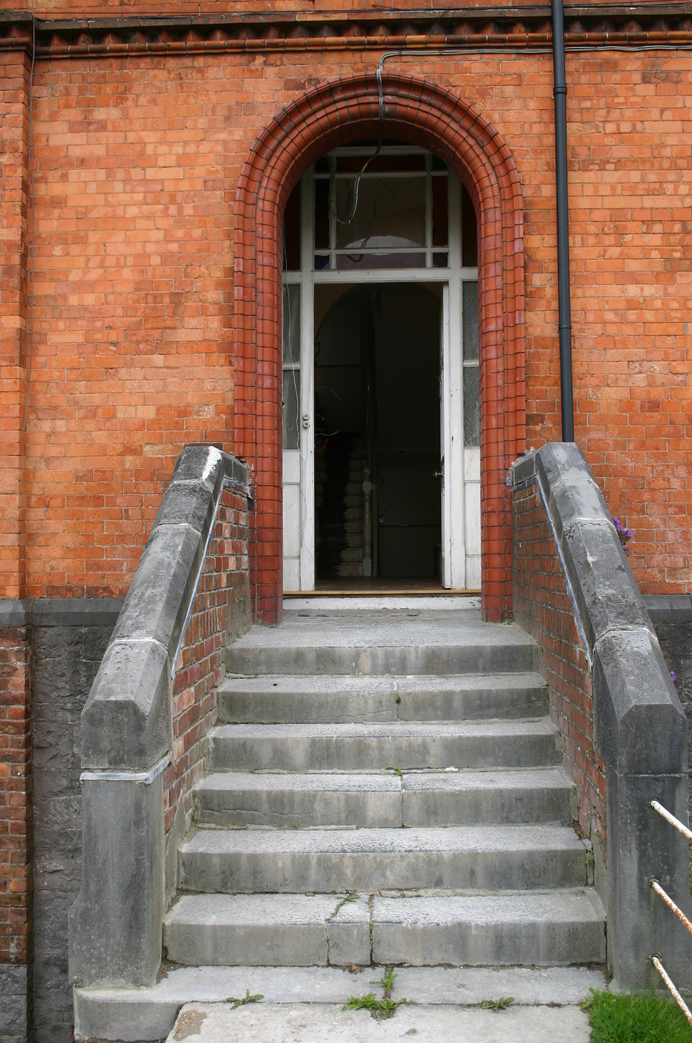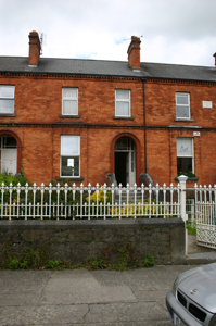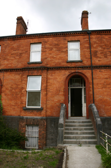 Terraced two-bay two-storey over basement red brick and limestone house, built in 1892, having an arched opening leading to recessed entrance porch, a shallow breakfront window bay at ground and basement level, and a two-storey over basement return. Hipped artificial slate roof to house and return. Red brick chimneystacks to party walls, with stringcourses and octagonal and plain clay pots. uPVC rainwater goods. Squared and coursed limestone basement and rear elevation, with limestone ashlar plinth course delineating ground floor level. Non-facing red brick to breakfront window on front basement elevation and return elevations. Red brick faced walls elsewhere, laid in English garden wall bond, with moulded red brick dog-tooth course delineating first floor level and corbelled brick eaves course. Square-headed window openings, red brick flat arch, reveals, and limestone sills surrounding replacement uPVC windows, and single-pane timber sash window at basement level. Round-arch porch opening with moulded brick surround and reveals, arrived at by a flight of limestone steps flanked by red brick-faced plinth wall with limestone ashlar coping, re-laid on lead moisture course. Tiled entrance porch floor. Tripartite timber doorcase comprising two-pane side lights over panelled timber bases, and margin-paned coloured glass overlight. Raised and fielded panelled timber door with stop-chamfer detailing. Brass door furniture. Site enclosed by squared rubble limestone plinth wall with ashlar limestone coping supporting cast-iron railings. Pedestrian entrance with limestone step and cast-iron rail posts support cast-iron pedestrian gate. Rear site access lane with red brick boundary wall having plank timber pedestrian gate.