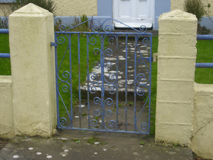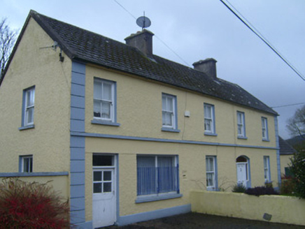 Detached five-bay two-storey pair of houses, built c. 1820. Pitched artificial slate roof with rendered chimneystacks and copings to gables. Roughcast rendered walls with render quoins, platband and plinth course. Square-headed openings with two-over-two pane timber sliding sash windows. Square-headed opening to ground floor with fixed timber window and metal sill guard. Segmental-headed door opening with timber panelled door, fixed pane sidelights and overlight. Square-headed door opening with timber battened half-glazed door and overlight. Single-bay single-storey with attic storey outbuilding attached with pitched artificial slate roof, roughcast rendered walls and square-headed openings with timber sliding sash windows and timber battened double-leaf doors. Rendered boundary walls with cast-iron and wrought-iron railings. Rendered square-profile piers to pedestrian entrance with cast-iron gate.
