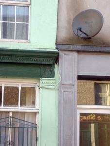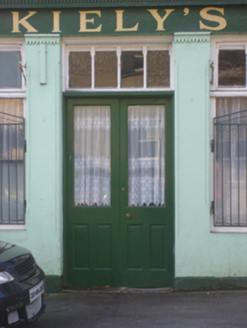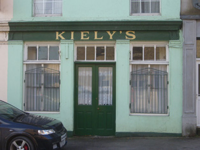 Terraced two-bay two-storey house, built c. 1820, having render shopfront to ground floor. Pitched slate roof with red brick chimneystack and cast-iron rainwater goods. Rendered walls having render plinth course. Square-headed openings to first floor with replacement uPVC windows. Shopfront comprising render pilasters having roll moulded edges and sawtooth motifs to capitals supporting fascia with decorative leaf motifs and cornice having sawtooth motifs. Square-headed display openings with panelled overlights over bipartite fixed windows and cast-iron sill guards. Square-headed opening having panelled glazed overlight over half-glazed timber panelled double-leaf doors.