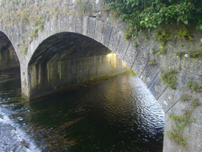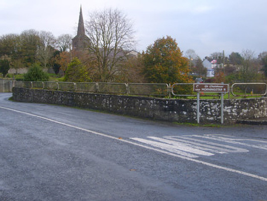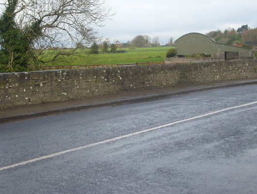 Double-arch limestone bridge over the River Morningstar, built c. 1820, with roughly dressed walls with rubble cappings. Cut plinths with V-cutwater to east elevation. Dressed voussoirs to segmental-headed arches.
