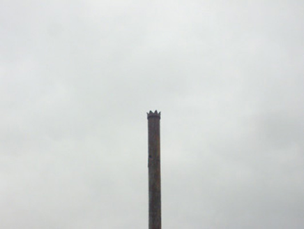 Freestanding cast-iron vent pipe, c. 1900, comprising fluted pedestal with moulded necking, and cylindrical shaft having a sawtooth profiled parapet. Now in disuse.