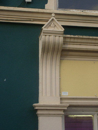 The form of this house, which was formerly possibly two houses, remains mostly intact, and is enhanced by the rich ornamentation applied to the façade. The elaborate render includes ornate window surrounds, stringcourse and quoins. Both shopfronts are tripartite in form, with decorative scrolled consoles and Doric style pilasters. The building presents a unified, elaborate front which makes a strong and positive contribution to the streetscape in Caherconlish.