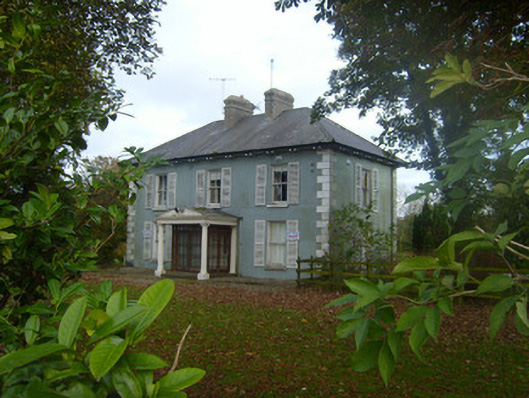 Detached three-bay two-storey house, built c. 1865, having recent porch to front (west) elevation. Hipped slate roof with rendered chimneystacks, overhanging eaves, timber brackets and cast-iron rainwater goods. Rendered walls having render quoins. Square-headed openings with two-over-two pane timber sliding sash windows, external timber shutters and concrete sills. Square-headed opening to porch having double-leaf glazed door, accessed via steps. Round-headed opening, obscured by porch, having glazed overlight over timber panelled door with flanking sidelights. Pair of square-profile rusticated limestone piers to west with carved caps, replacement single-leaf metal gate and roughly dressed limestone walls.