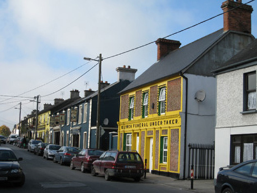 Detached three-bay two-storey house, built c. 1820, with double shopfront to front (south) elevation. Now also in use as an undertakers. Pitched artificial slate roof with red brick chimneystacks having render and moulded brick and chevron pattern courses, render eaves course and ridge capping. Rendered walls, pebble dashed with smooth render edging to corners to front elevation, smooth rendered to other elevations. Square-headed openings with replacement uPVC windows, decorative render surrounds and moulded render sills, those to first floor forming part of continuous sill course and cornice. Shopfront to ground floor comprising render pilasters flanking openings and to corners, those to corners with render brackets, render architrave, fascia with raised lettering and cornice. Square-headed openings with replacement uPVC windows, render sills and surrounds. Square-headed openings with replacement uPVC doors.