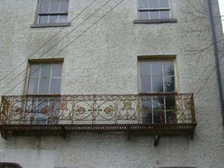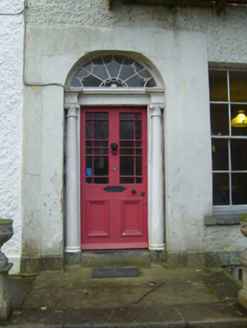 End-of-terrace two-bay three-storey house over basement, built in 1812. Pitched slate roof having overhanging eaves with timber brackets, rendered chimneystack and cast-iron rainwater goods. Roughcast rendered walls having limestone plinth course. Square-headed openings to second floor with six-over-three pane timber sliding sash windows. Limestone sills throughout. Square-headed openings to first and ground floors having six-over-six pane timber sliding sash windows. Square-headed opening to basement with fixed window. Wrought-iron balcony to first floor. Round-headed opening having cobweb fanlight over half-glazed timber panelled door with flanking render Ionic style engaged columns. Limestone steps to entrance.