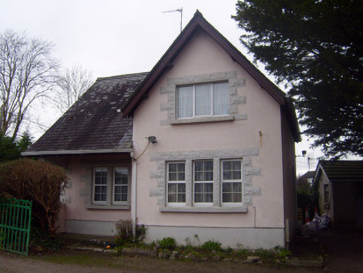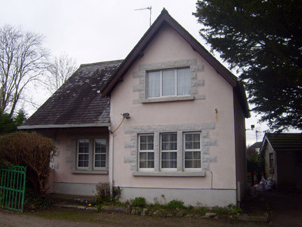 Detached two-bay two-storey former gate lodge, built c. 1810. Comprising gable-fronted projecting end bay and verandah to front (south) elevation. Pitched slate roof having rendered chimneystack and overhanging eaves with timber bargeboards. Rendered walls having render plinth course. Square-headed openings to first floor with painted rusticated stone block-and-start surrounds, concrete sills and replacement uPVC windows. Square-headed bipartite opening to ground floor having painted rusticated stone block-and-start surround, concrete sill and replacement uPVC windows. Square-headed tripartite opening to projecting end bay, ground floor with painted rusticated stone block-and-start surround, concrete sill and replacement uPVC windows. Square-headed quadripartite opening to east elevation, ground floor having painted rusticated stone block-and-start surround, concrete sill and replacement uPVC windows. Render Doric style pilaster to veranda. Square-headed opening to east elevation having painted rusticated stone block-and-start surround with replacement uPVC door. Rusticated limestone wall to north-east having square-headed opening with painted brick block-and-start surround and single-leaf cast-iron gate. Pair of square-profile roughly dressed limestone piers to south-east having double-leaf cast-iron gates.