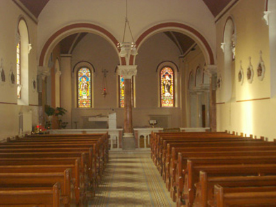 This convent chapel is an interesting example of late nineteenth-century ecclesiastical architecture. Clearly influenced by neo-classicism, the design departs from the Gothic Revival style favoured for such structures, as can be seen in the Doric style pilasters and robust pediments. The interior is particularly ornate having rich render ornamentation and decorative features such as the arcade with well composed marble Corinthian columns. The chapel forms part of a group of related structures, including the convent and national school. Plaque to front has date of '1883'.