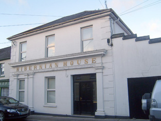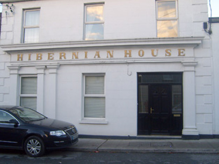 End-of-terrace three-bay two-storey house, built c. 1820, having render shopfront to front (south) elevation and stepped-profile adjoining wall to east. Hipped slate roof with rendered chimneystack and cast-iron rainwater goods. Lined-and-ruled rendered walls having render quoins and plinth course. Square-headed openings with concrete sills and replacement uPVC windows. Shopfront comprising Doric style pilasters supporting fascia with raised lettering and moulded cornice. Square-headed display windows having flanking Doric style pilasters. Square-headed opening with timber glazed overlight over replacement uPVC door having flanking side lights.