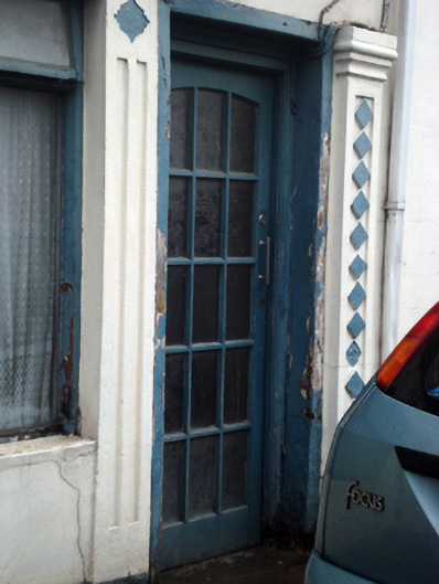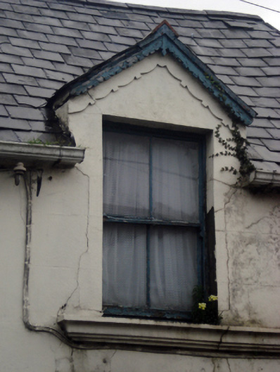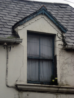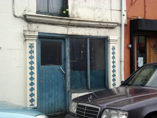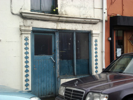 End-of-terrace two-bay two-storey house, built c. 1860, having gablets and render shopfronts to front (south) elevation. Pitched slate roof with render over red brick chimneystack. Timber bargeboards and render eaves course to gablets. Lined-and-ruled rendered walls with render quoins and plinth course. Square-headed openings to first floor having two-over-two pane timber sliding sash windows. Shopfront to west comprising Doric style pilasters with recessed panels having lozenge motifs, supporting fascia and moulded cornice. Square-headed timber casement display window with flanking fluted pilasters. Square-headed opening having half-glazed timber door. Shopfront to east comprising Doric style pilasters with recessed panels having lozenge motifs, supporting fascia and moulded cornice. Square-headed display window with timber mullion. Square-headed opening having half-glazed timber battened door.