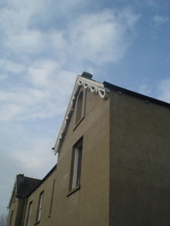 Detached five-bay two-storey H-plan former monastery, built c. 1880, comprising projecting gable-fronted end bays to front (south-west) and rear (north-west) elevations. Now in disuse. Pitched slate roof with rendered chimneystacks, cast-iron rainwater goods, limestone bracketed eaves and decorative timber bargeboards to gabled end bays. Lined-and-ruled rendered walls. Round-headed niches to end bays front elevation, second floor having render surrounds. Square-headed openings to front elevation with limestone sills and two-over-two pane timber sliding sash windows. Square-headed openings to rear and north-east elevations having replacement aluminium windows. Square-headed openings to end bays, first floor, front and rear elevations with stained glass windows. Square-headed openings first floor, south-east elevation having stained glass windows. Round-headed opening to south-east with replacement fanlight over timber panelled door and flanking sidelights. Cast-iron round-profile fluted piers to south-east having double-leaf cast-iron gates and flanking pedestrian single-leaf cast-iron gate. Rendered boundary walls with render copings.