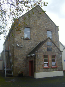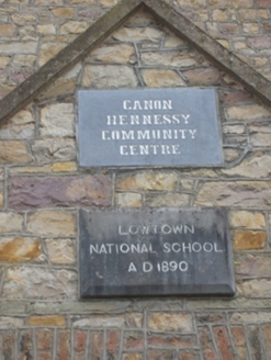 This school, built on land donated by the Lowe family at a cost £14,000, was built on the site of an earlier national school and may retain earlier fabric. The earlier school appears on the first edition OS map for Limerick County which dates to 1844. The two-storey form is unusual for a national school. The limestone plaques add context to the site.