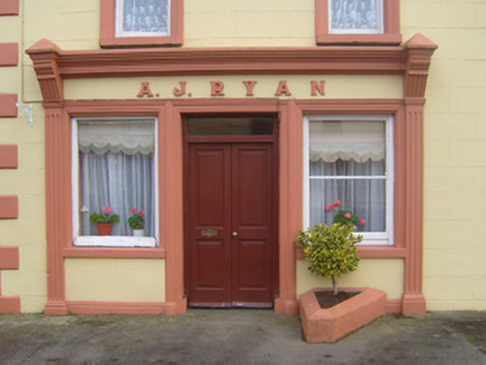 Detached five-bay two-storey house, built c. 1820, having render shopfront to front (west) elevation and single-storey extension to rear (east) elevation. Pitched slate roof with cast-iron rainwater goods and rendered chimneystacks. Lined-and-ruled rendered walls having render quoins. Square-headed openings with render surrounds, painted limestone sills and one-over-one pane timber sliding sash windows to front. Square-headed opening having render surround comprising fluted pilasters and consoles to glazed overlight over timber panelled door. Shopfront comprising fluted pilasters, ornate consoles, render fascia with raised lettering and moulded cornice. Square-headed display windows flanking square-headed opening having glazed overlight over timber panelled door.