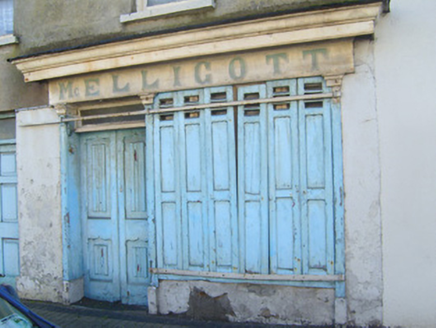 End-of-terrace three-bay two-storey house, built c. 1870, having shopfront to front (east) elevation. Pitched slate roof with render copings, cast-iron rainwater goods, render eaves course and red brick chimneystacks. Lined-and-ruled rendered walls. Square-headed openings having concrete sills and one-over-one pane timber sliding sash windows. Square-headed opening with glazed overlight over timber panelled door. Shopfront comprising render pilasters supporting timber fascia having painted lettering and cornice. Square-headed display windows with external timber shutters. Recessed square-headed opening having glazed overlight double-leaf timber panelled doors.