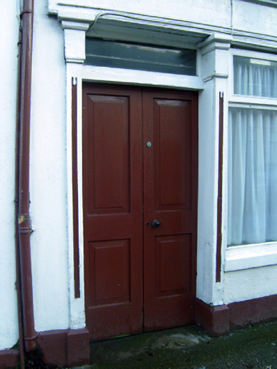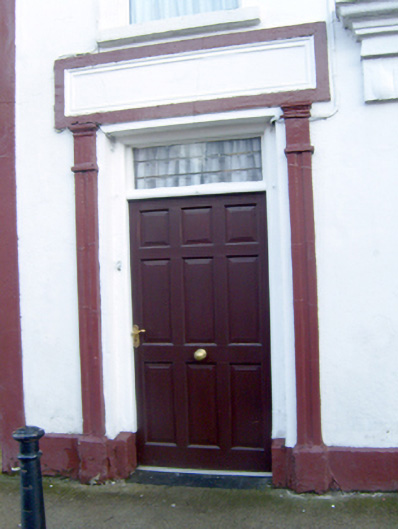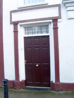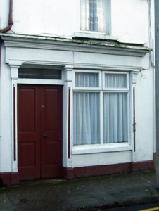 Terraced five-bay two-storey house, built c. 1810, having late nineteenth-century render shopfronts to front (west) elevation. Pitched slate roof with rendered chimneystacks and cast-iron rainwater goods. Rendered walls having render plinth course. Square-headed openings with painted stone sills and replacement uPVC windows. Square-headed opening having render pilasters and entablature over glazed overlight and timber panelled door. Shopfront to front elevation, north end bay comprising render pilasters supporting battened fascia and cornice. Square-headed display openings with fixed and timber casement windows and concrete sills. Square-headed opening having glazed overlight over double-leaf timber panelled doors. Square-headed opening with glazed overlight over half-glazed timber panelled door. Shopfront to front elevation, north end bay comprising render pilasters supporting fascia and cornice. Square-headed display opening having timber casement window. Square-headed opening with flanking pilaster and glazed overlight over double-leaf timber panelled doors.