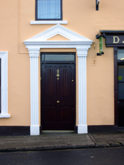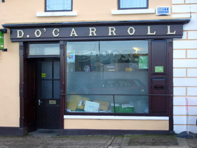 Detached four-bay two-storey house, built c. 1830, having timber shopfront to front (west) elevation. Pitched slate roof with rendered chimneystacks. Rendered walls, render quoins and plinth course. Square-headed openings having one-over-one pane timber sliding sash windows to south end bay and replacement uPVC windows to north end bay. Square-headed opening with flanking fluted render pilasters, architrave and glazed overlight over timber panelled door. Shopfront comprising chamfered pilasters supporting fascia having raised lettering and cornice. Square-headed display opening with fixed window, chamfered surround and cast-iron sill guard. Square-headed opening having glazed overlight and double-leaf timber panelled doors.