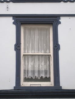 Terraced four-bay three-storey house, built c. 1810, having render shopfront to front (north-east) elevation. Pitched slate roof with rendered chimneystacks, render eaves course and cast-iron rainwater goods. Rendered walls having render quoins and decorative render fascia to second floor. Square-headed with moulded render surrounds, concrete sills and one-over-one pane timber sliding sash windows. Shopfront comprising scrolled render consoles, fascia and moulded cornice. Square-headed display windows. Square-headed opening having overlight over half-glazed timber panelled door with flanking fluted pilasters. Square-headed opening having double-leaf timber battened doors.