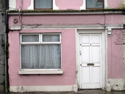 Semi-detached two-bay three-storey house, built c. 1810, having render shopfront to front (north-east) elevation. Pitched slate roof with brick chimneystacks and cast-iron rainwater goods. Rendered walls having render quoins, decorative render motif to ground floor, centre-bay and render plinth course. Square-headed openings with shouldered render surrounds, concrete sills and timber casement windows. Those to second floor having render brackets, those to first floor with render keystones. Shopfront comprising consoles having floral motif, fascia with brackets and moulded cornice. Square-headed display opening having replacement uPVC window and concrete sill. Square-headed opening with timber panelled door.