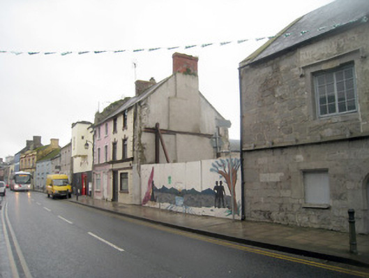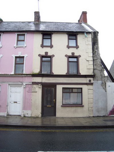 Semi-detached two-bay three-storey house, built c. 1810, having render shopfront to front (north-east) elevation. Pitched slate roof with brick chimneystacks and cast-iron rainwater goods. Rendered walls having render quoins, decorative render motif to ground floor, centre-bay and render plinth course. Square-headed openings with shouldered render surrounds, concrete sills and timber casement windows. Those to second floor having render brackets, those to first floor with render keystones. Shopfront comprising consoles having floral motif, fascia with brackets and moulded cornice. Square-headed display opening having replacement uPVC window and concrete sill. Square-headed opening with replacement uPVC door.