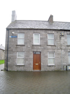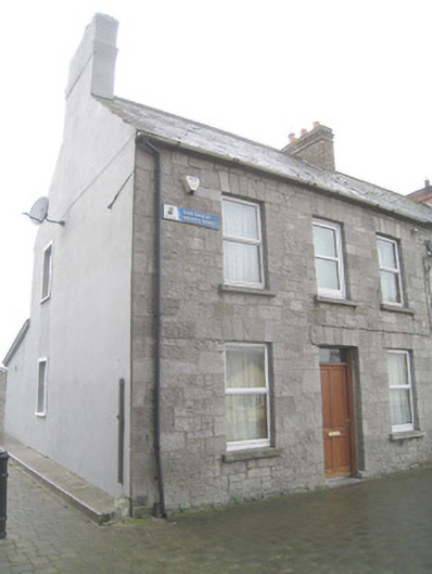End-of-terrace three-bay two-storey house, built c. 1840, having single-storey lean-to to rear (south) elevation. Pitched slate roof with render and brick chimneystacks. Snecked dressed limestone walls to front (north) elevation render walls to east and rear elevations. Square-headed openings having limestone voussoirs, sills and replacement uPVC windows. Square-headed opening with limestone voussoirs and glazed overlight over replacement timber panelled door.
