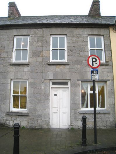 Terraced three-bay two-storey house, built c. 1840, with pitched slate roof with brick chimneystacks. Snecked dressed limestone walls. Square-headed openings having limestone voussoirs, sills and two-over-two pane timber sliding sash windows. Square-headed opening to ground floor with limestone voussoirs, replacement uPVC window and concrete sill. Square-headed opening having limestone voussoirs and glazed overlight over double-leaf timber panelled doors.