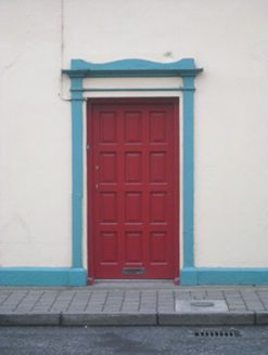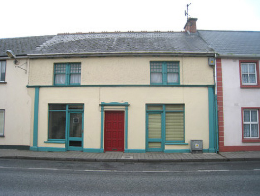 Terraced three-bay two-storey house, built c. 1840, having shopfronts to front (north-east) elevation. Pitched slate roof with cast-iron ridge crestings and brick chimneystack. Rough-cast rendered walls to first floor and rendered walls to ground floor having Doric style pilasters to end bays. Square-headed openings to first floor with render continuous sill course and bipartite twelve-over-one pane timber sliding sash windows having banded Doric style engaged columns to timber mullions. Square-headed display openings to ground floor with timber casement windows and flanking square-headed openings with glazed overlights over glazed doors. Square-headed opening having render surround and timber panelled door.