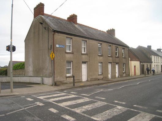End-of-terrace two-bay two-storey house, built c. 1830. Pitched slate roof with terracotta ridge crestings, brick chimneystacks and cast-iron rainwater goods. Lined-and-ruled rendered walls with render plinth course having cast-iron vent. Square-headed openings with limestone sills and one-over-one pane timber sliding sash windows. Square-headed opening having glazed overlight over timber panelled door.