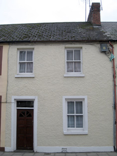 Terraced two-bay two-storey house, built c. 1830. Pitched slate roof with brick chimneystack and cast-iron rainwater goods. Roughcast rendered walls having render plinth course with cast-iron vent. Square-headed openings having painted stone sills and two-over-two pane timber sliding sash windows. Render surround to ground floor window. Square-headed opening with render surround and glazed overlight over replacement half-glazed timber panelled door.