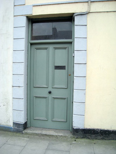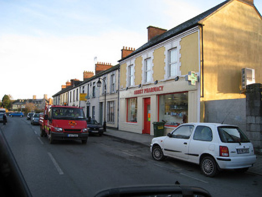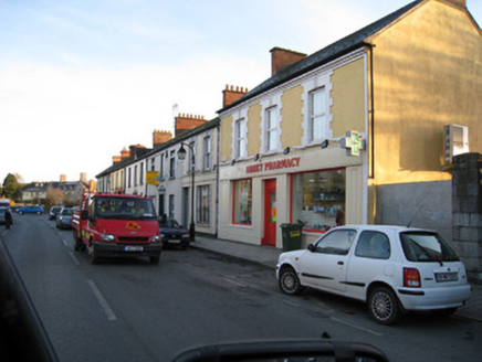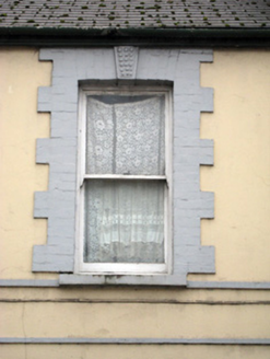 Terraced two-bay two-storey house, built c. 1890, having render shopfront. Pitched slate roof with brick chimneystack and cast-iron rainwater goods. Rendered walls having render quoins. Square-headed openings to first with painted brick block-and-start surrounds, concrete sills and one-over-one timber sliding sash windows. Shopfront comprising render fascia. Square-headed display opening having render surround and timber casement window with metal cast-iron sill guard. Square-headed opening having flanking render pilasters and glazed overlight over timber panelled door.
