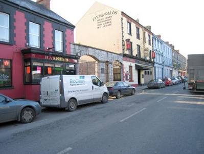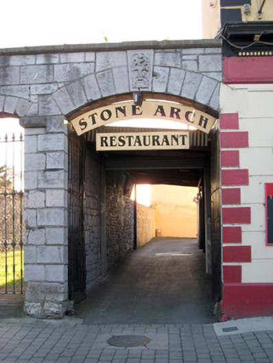 Ashlar limestone walls to former fair green, erected in 1878, having limestone coping, elliptical-headed carriage arch to east end bay with cut voussoirs, inscribed keystone, impost course and double-leaf cast-iron gates. Elliptical-headed pedestrian entrance having cut voussoirs, impost course and single-leaf cast-iron gate. Elliptical-headed carriage arch to west end bay with cut voussoirs, keystone with portrait motif and double-leaf cast-iron gates. Inscribed plaques beneath impost courses.