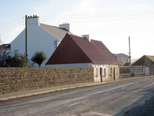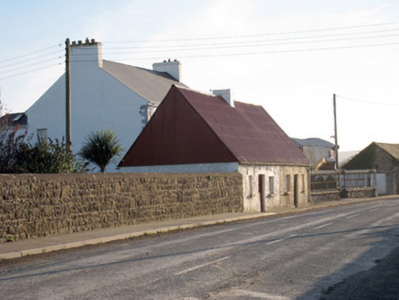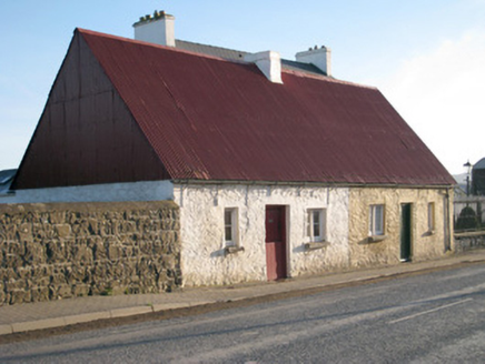 Semi-detached three-bay single-storey house, built c. 1800. Pitched corrugated-iron roof with rendered chimneystacks. Roughcast rendered walls. Square-headed opening having one-over-one pane timber sliding sash window and limestone sill. Square-headed opening with bipartite one-over-one pane timber sliding sash windows and limestone sill. Square-headed opening having battened half-door.