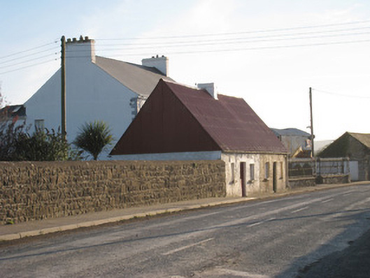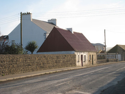 Semi-detached three-bay single-storey house, built c. 1800. Pitched corrugated-iron roof with rendered chimneystacks. Roughcast rendered walls. Square-headed opening having timber casement window and limestone sill. Square-headed opening with bipartite timber casement windows and limestone sill. Square-headed opening having battened door.