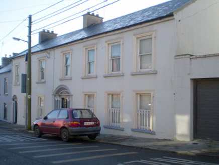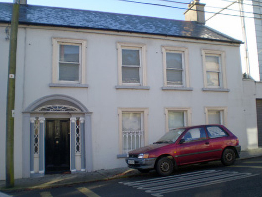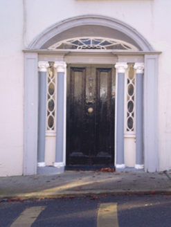 Semi-detached four-bay two-storey house, built c. 1820, one of a pair. Pitched slate roof with render copings to north gable, render eaves course and rendered chimneystacks. Render walls. Square-headed openings with render shouldered surrounds, and one-over-one pane timber sliding sash windows, those to ground floor with decorative cast-iron sill guards. Segmental-headed door opening with decorative render surround comprising pilasters and fluted arch. Timber doorcase comprising pairs of engaged columns with decorative capitals, each pair flanking sidelight with decorative timber tracery, pairs flanking timber panelled door with frieze, cornice and cobweb fanlight above.