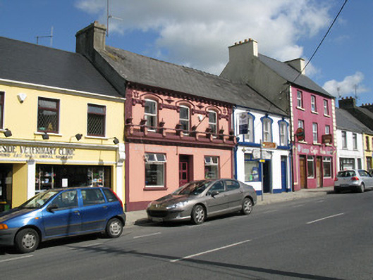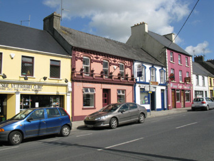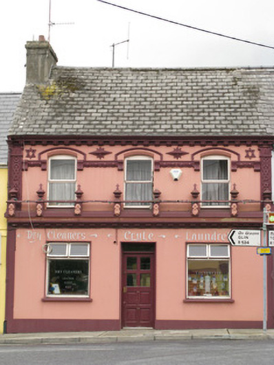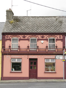 Terraced three-bay two-storey former house and pub, built c. 1900, having ornate render shopfront to front (west). Now in use as a laundrette. Pitched artificial slate roof with rendered chimneystack, decorative render corbelled eaves course and cast-iron rainwater goods. Rendered walls throughout, having render pilasters with Celtic interlace, star motifs, Stars of David to first floor. Having egg and dart stringcourse with corbelled label stops at impost level, incorporating raised rendered hoodmouldings to windows. Camber-headed window openings to first floor having moulded render archivolt and replacement square-headed timber casement windows. Rendered shopfront, comprising pilasters surmounted by dentilated cornice surmounted with render balustrade, having foliate motifs, railing with cross finials to balustrades. Square-headed window openings having raised render surrounds and replacement single-pane timber-framed display windows surmounted by hinged bipartite overlights. Square-headed door opening having glazed timber door surmounted by single-pane overlight. Located fronting directly onto Church Street.