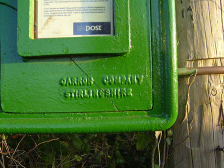 This well designed post box serves as a physical reminder of the growing confidence within the Irish Free State in the mid twentieth century. The simple lettering enlivens the modest form and adds artistic interest to the letter box. Inscription reads : 'Carron Company Stirlingshire'. The Carron Company was an ironworks established in 1759 on the banks of the River Carron near Falkirk, in Stirlingshire, Scotland. After initial problems, the company was at the forefront of the Industrial Revolution in the United Kingdom. The company prospered through its development and production of a new short-range and short-barrelled naval cannon, the carronade. The company was one of the largest iron works in Europe through the nineteenth century. After 223 years, the company became insolvent in 1982 and was later acquired by the Franke Corporation.
