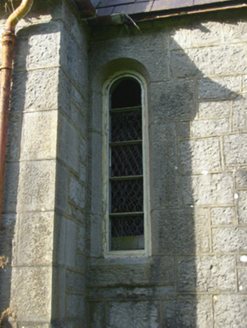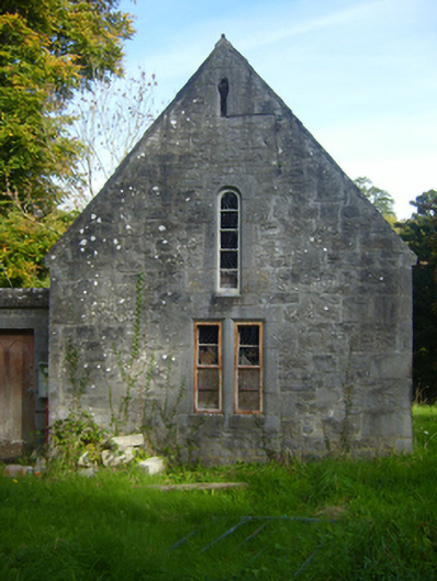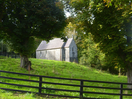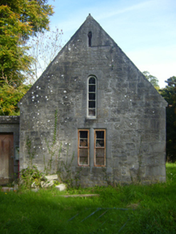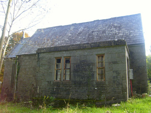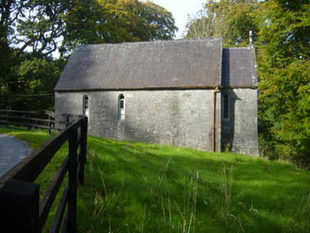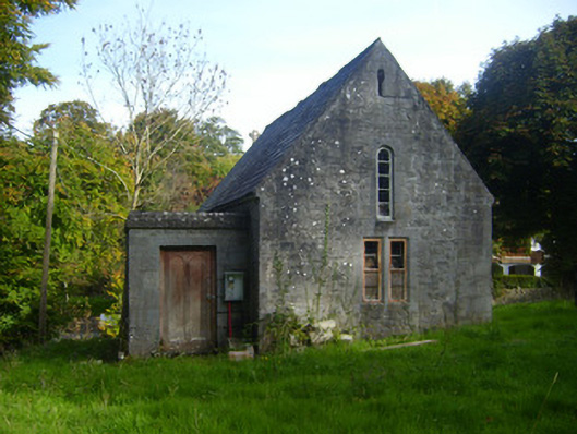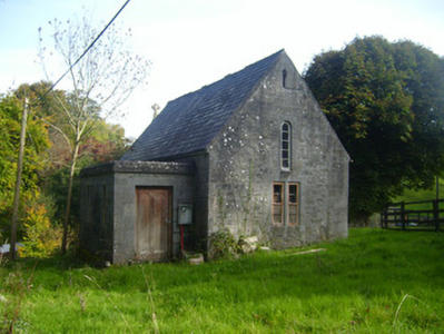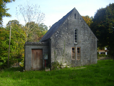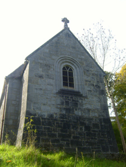 Freestanding gable-fronted double-height Church of Ireland church, built c. 1880, with date plaque of 1926. Comprising two-bay nave with lower chancel to east elevation and flat-roofed porch to north elevation. Pitched slate roof with limestone eaves course, cast-iron rainwater goods and limestone finial to chancel. Roughly dressed limestone walls having cut limestone quoins. Inscribed limestone date plaque to south elevation. Square-headed openings to north and west elevations having cast-iron fittings and limestone surrounds. Round-headed openings to south and west elevations with limestone surrounds and timber fittings. Round-headed opening to east elevation of chancel having decorative carved chamfered limestone surround, sill and timber framed window. Round-headed opening to west gable with limestone surround. Square-headed opening to west elevation with timber panelled door.
