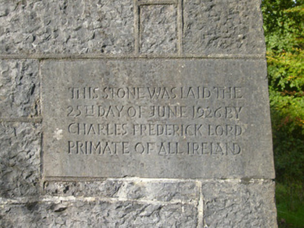 The positioning of this church within the landscape is of interest and this is relected in the tall form of its east elevation construction. The church's simple form is enhanced and enlivened by simple decorative features, including cut limestone surround to the chancel window and the stone finial. The construction shows evidence of fine stonework and the plaque which reads: 'This stone was laid the 25th day of June 1926 by Charles Frederick Lord Primate of All Ireland' adds context to the site. It forms a notable feature on the landscape.