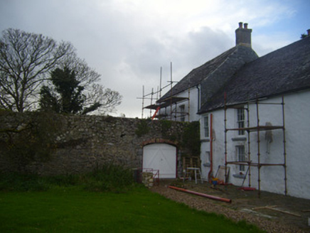 Detached T-plan five-bay two-storey house, built c. 1674, having three-bay two-storey and two-bay two-storey blocks to east elevation. Lean-to porch to south (rear) elevation of main block. Pitched slate roof to main block and two-bay east block. Half-hipped slate roof to three-bay east block. Cast-iron rainwater goods, rendered chimneystacks and render eaves course to pitched roofs, red brick chimneystack and terracotta ridge tiles to half-hipped roof. Roughcast rendered walls, limestone visible in places to main block. Tooled limestone continuous sill course to first floor, front (north) elevation of main block, and tooled limestone plinth course. Slate hung to north elevation of two-bay east block. Square-headed openings throughout. Openings to north having limestone sills, render surrounds and six-over-six pane and six-over-three pane timber sliding sash windows. Openings to other elevations with limestone sills and six-over-six pane and six-over-three pane timber sliding sash windows and timber framed windows. Round-headed opening to front with render surround and timber panelled door. Square-headed opening to west elevation having timber battened door and glazed panel recessed within opening. Square-headed opening to north of east block with timber battened door. I nterior undergoing renovation, retains features including door locking mechanism dating to 1650. Walled garden adjoining east and north elevations of east block, having square-profile two-stage tower to north-east corner. Rubble stone walls to walled garden. Pointed arch opening to west elevation with red brick surround and timber battened door. Segmental-headed opening to south elevation having red brick voussoirs and double-leaf timber battened door. Garderobe incorporated into north elevation of garden, washed out by tidal water from Shannon. Rubble stone walls to tower, render still visible in places, including render quoins. Square-headed opening to west elevation. Barrel-vaulted red brick ceiling to interior. Square-headed opening to south elevation having limestone sill. Square-profile rendered piers with limestone caps flanking double-leaf cast-iron gate to north-west of house.