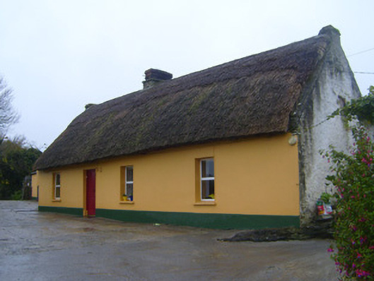 Detached four-bay single-storey thatched house, built c. 1800, having gabled single-bay single-storey extension to rear (north) elevation. Pitched thatched roof with rendered and red brick chimneystacks. Pitched slate roof to extension. Rendered walls having render plinth course. Square-headed openings throughout having concrete sills, render surrounds and replacement uPVC windows. Square-headed opening to rear with half-glazed timber battened panel. Square-headed opening to front with render surround and double-leaf timber panelled door. Outbuildings adjoining west elevation.