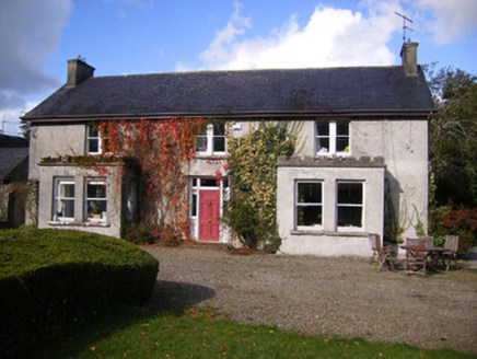 Detached three-bay two-storey house, built in 1719, with crenellated box bay windows to front (south) elevation and three-bay single-storey lean-to to rear (north) elevation. Pitched slate roof having rendered chimneystacks. Single-pitched artificial slate roof with rendered chimneystack to lean-to. Roughcast rendered walls having inscribed limestone plaque to front elevation. Square-headed openings to first floor with bipartite one-over-one pane timber sliding sash windows and limestone sills. Square-headed openings to box bay windows having one-over-one pane timber sliding sash windows and limestone sills. Square-headed opening with glazed overlight over timber panelled door having flanking sidelights and timber panelled risers. Four-bay single-storey outbuilding to west with pitched slate roof and rendered chimneystack. Roughcast rendered walls. Square-headed window opening. Square-headed openings with timber battened doors. Seven-bay two-storey outbuilding to north-west having pitched slate roof and brick chimneystack. Roughcast rendered walls. Square-headed window openings. Square-headed door openings. Elliptical-headed opening with tooled limestone voussoirs. Pair of square-proflie limestone piers to south having rubble limestone sweeping walls terminating in second pair of piers.