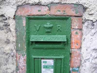 This attractive cast-iron post box, with the Queen Victoria monogram and crown motif, is an important reminder of Ireland's relationship with Britian. It is of technical interest for its cast-iron construction.