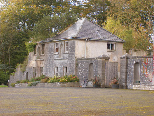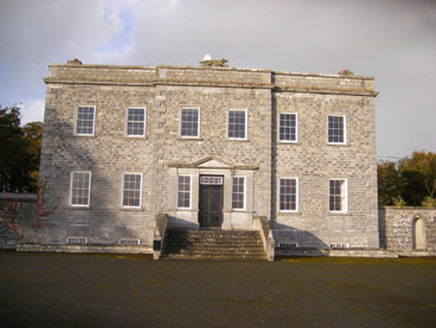 Detached six-bay two-storey over basement country house, built between 1745-46, having shallow breakfront to front (south) elevation. Centre block joined by screen walls to two-storey flanking wings enclosing courts. Roughly dressed parapet to roofline with limestone copings, carved limestone eaves course, carved fox to breakfront and rendered chimneystacks. Coursed rubble limestone walls with galleting and having carved plinth course, quoins. Rendered walls to east and west elevations. Square-headed openings with six-over-six pane timber sliding sash windows, limestone sills and voussoirs with galleting. Square-headed openings to basement having three-over-six pane timber sliding sash windows, limestone sills, voussoirs with galleting and cast-iron sill guards. Round-headed opening to first floor, east elevation having spoked fanlight over six-over-six pane timber sliding sash window and limestone sill. Oculus to west elevation with limestone surround and spoked fixed window. Round-headed niche to rear (north) elevation having carved limestone impost course, voussoirs with galleting and limestone sill. Square-headed opening to rear, basement with six-over-three pane timber sliding sash windows and limestone sill. Four-bay two-storey L-plan wing to west having hipped slate roof with yellow brick eaves course and rendered chimneystack. Dressed limestone walls to front (south) elevation and rendered walls to rear (north) elevation. Square-headed window openings to ground floor with remains of three-over-three pane timber sliding sash windows, tooled limestone voussoirs and sills. Round-headed niches to first floor having carved keystones, voussoirs, shared sill and flanking square-headed window openings with limestone sills. Camber-headed door opening to rear having yellow brick voussoirs. Square-headed carriage opening to rear with timber battened doors. Six-bay single-storey outbuilding to north with pitched slate roof and rendered chimneystack. Render over roughly dressed limestone walls. Square-headed window openings with limestone sills. Square-headed openings having timber battened doors. Pair of square-profile channel rendered piers to west having dressed limestone walls with round-headed niches having limestone sills and copings. Elliptical-headed carriage arch to north-west with double-leaf cast-iron gates. Dressed limestone walls with limestone coping adjoining east elevation having square-headed pedestrian entrance with carved limestone block-and-start surround and drop keystone with flanking round-headed niches having limestone sills, voussoirs and keystones. Pair of square-profile monolith chamfered limestone piers with carved caps and plinths to south. Single-bay single-storey gate lodge to south. Hipped slate roof having overhanging eaves with rendered chimneystacks and cast-iron brackets. Roughcast rendered walls. Square-headed window and door openings. Pair of square-profile rusticated piers to south with carved caps and double-leaf cast-iron spear-headed gates. Rubble limestone boundary walls to site.