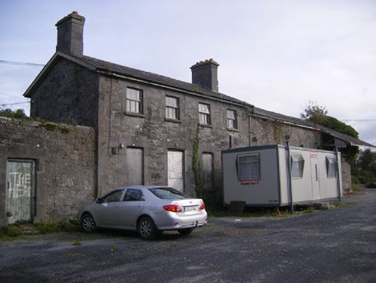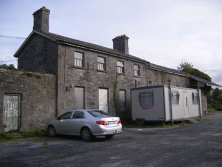 Detached four-bay two-storey former railway station, built in 1858, having adjoining wall to west elevation and goods shed to east elevation. Timber canopies to north elevation and goods shed, south elevation. Pitched slate roof with cut limestone chimneystacks. Cat slide slate roof to goods shed canopy. Snecked limestone walls having cut limestone quoins and plinth course. Square-headed openings with cut limestone block-and-start surrounds and limestone sills. Those to first floor having three-over-three pane timber casement windows. Those to ground floor blocked up. Square-headed window opening to goods shed, south elevation having cut limestone block-and-start surrounds and limestone sill, now blocked up. Square-headed window opening to goods shed, east elevation with red brick block-and-start surround and limestone sill, now blocked up. Square-headed door opening to south elevation having cut limestone block-and-start surround and limestone sills. Elliptical-headed arch to goods shed with cut limestone voussoirs and timber battened sliding door. Timber bench to north elevation. Platform to north having limestone paving. Two-bay two-storey singal box to north. Hipped slate roof. Red brick walls. Square-headed window openings to first floor. Camber-headed window openings to ground floor with red brick voussoirs, hoodmouldings, limestone sills and remains of fixed cast-iron windows.
